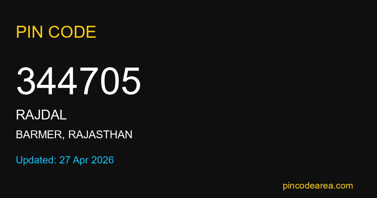 344705 PIN Code is assigned to Rajdal Post Office located in Barmer district of Rajasthan. It helps identify the exact delivery area for postal and courier services.
