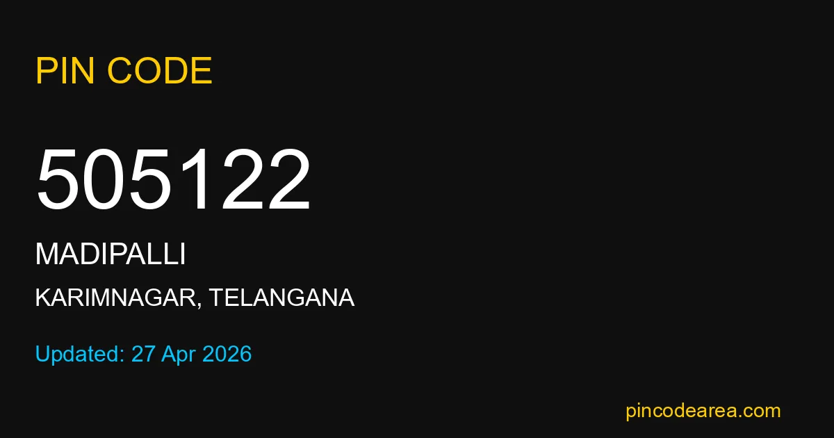 505122 PIN Code is assigned to Madipalli Post Office located in Karimnagar district of Telangana. It helps identify the exact delivery area for postal and courier services.