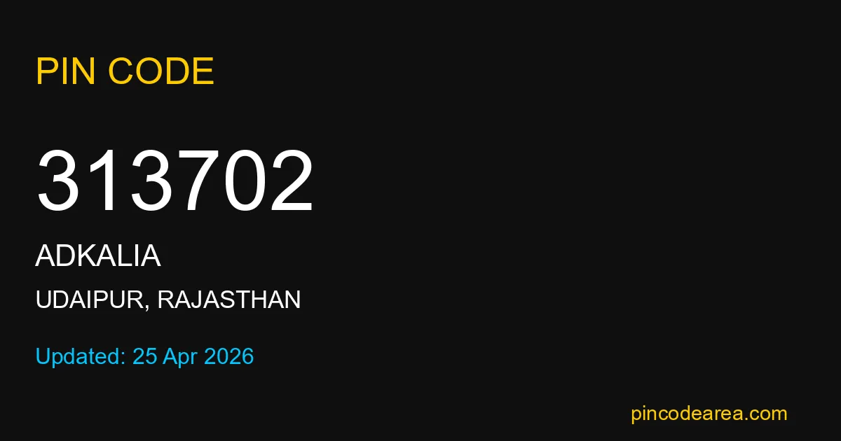 If you are searching for accurate location details, 313702 helps identify the exact postal region of Adkalia in Rajasthan.