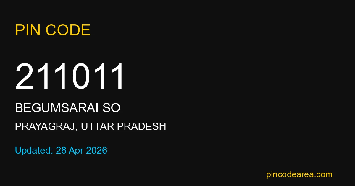 211011 PIN Code is assigned to Begumsarai SO Post Office located in Prayagraj district of Uttar Pradesh. It helps identify the exact delivery area for postal and courier services.
