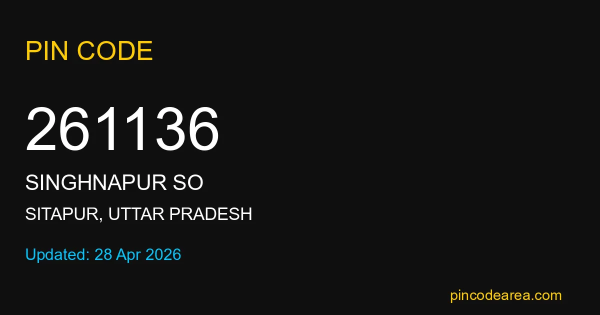 261136 PIN Code is assigned to Singhnapur SO Post Office located in Sitapur district of Uttar Pradesh. It helps identify the exact delivery area for postal and courier services.