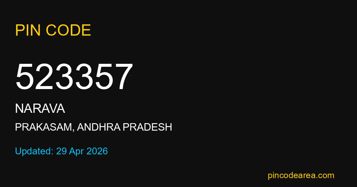 If you are searching for accurate location details, 523357 helps identify the exact postal region of Narava in Andhra Pradesh.