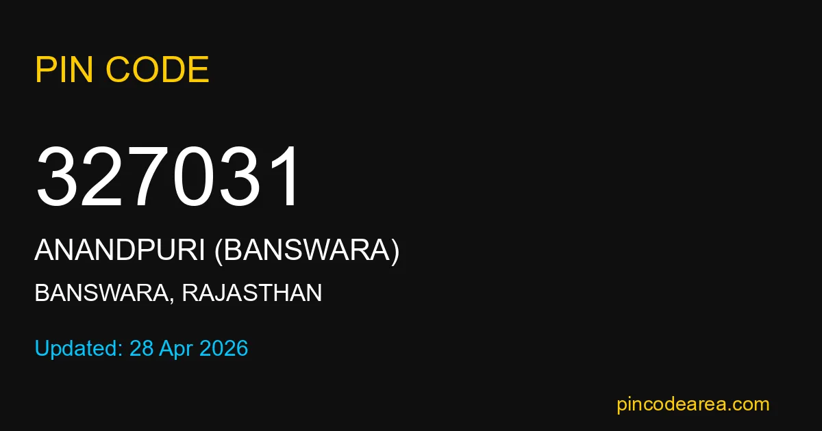 If you are searching for accurate location details, 327031 helps identify the exact postal region of Anandpuri (Banswara) in Rajasthan.