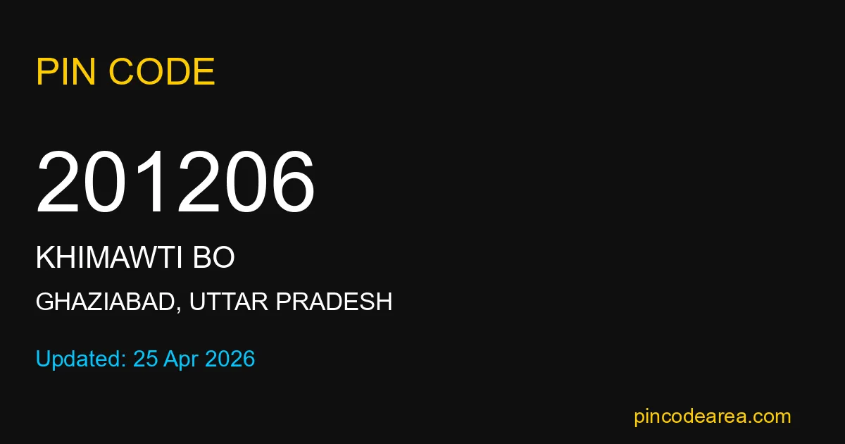 201206 PIN Code is assigned to Khimawti BO Post Office located in Ghaziabad district of Uttar Pradesh. It helps in identifying the exact delivery area.