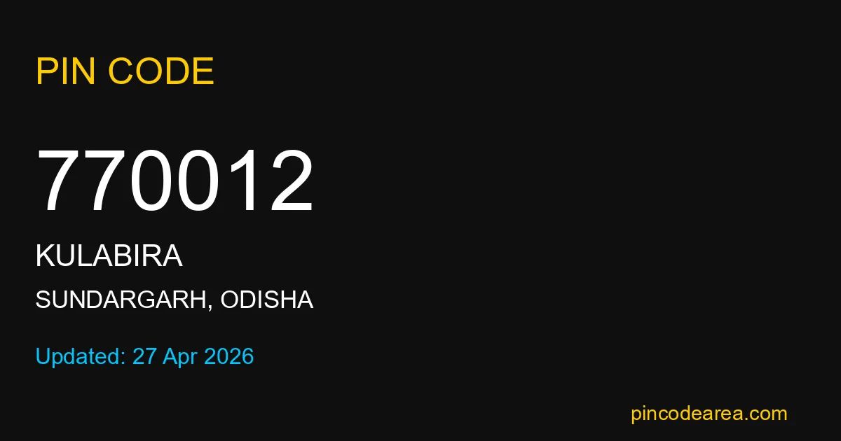 770012 PIN Code is assigned to Kulabira Post Office located in Sundargarh district of Odisha. It helps identify the exact delivery area for postal and courier services.