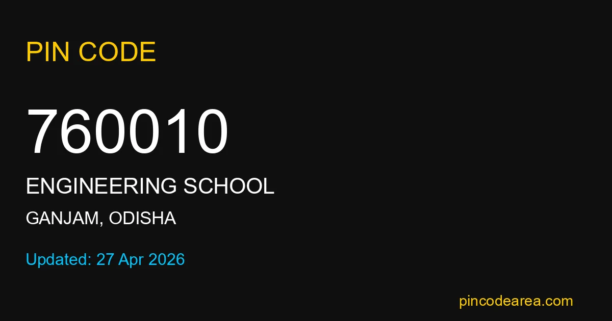 760010 PIN Code is assigned to Engineering School Post Office located in Ganjam district of Odisha. It helps identify the exact delivery area for postal and courier services.