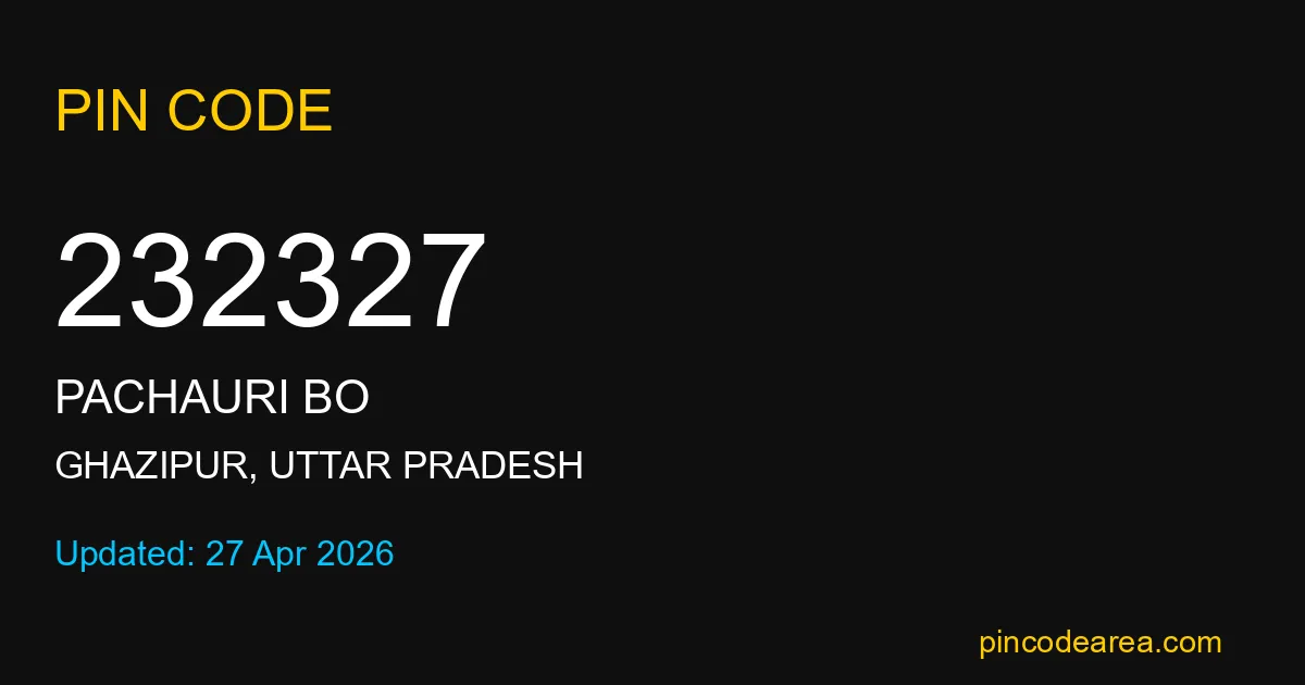 232327 PIN Code is assigned to Pachauri BO Post Office located in Ghazipur district of Uttar Pradesh. It helps identify the exact delivery area for postal and courier services.