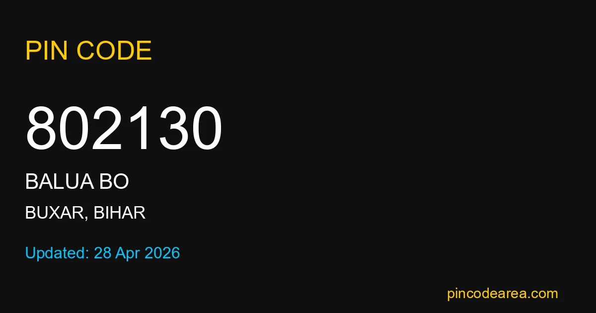 802130 PIN Code is assigned to Balua BO Post Office located in Buxar district of Bihar. It helps identify the exact delivery area for postal and courier services.