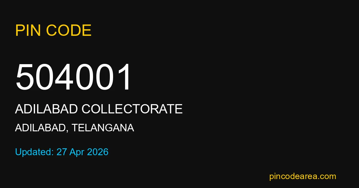 If you are searching for accurate location details, 504001 helps identify the exact postal region of Adilabad Collectorate in Telangana.