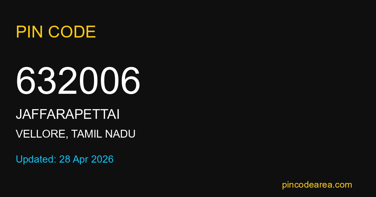 If you are searching for accurate location details, 632006 helps identify the exact postal region of Jaffarapettai in Tamil Nadu.