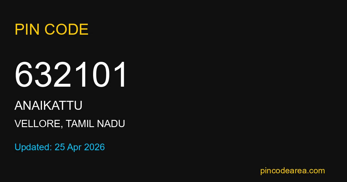 If you are searching for accurate location details, 632101 helps identify the exact postal region of Anaikattu in Tamil Nadu.