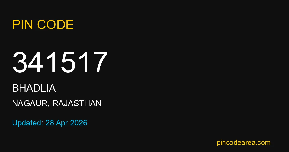 If you are searching for accurate location details, 341517 helps identify the exact postal region of Bhadlia in Rajasthan.