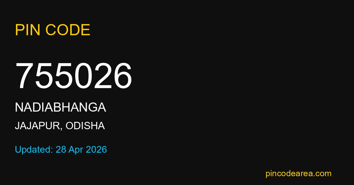 If you are searching for accurate location details, 755026 helps identify the exact postal region of Nadiabhanga in Odisha.