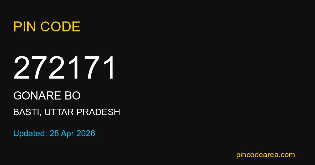 272171 PIN Code is assigned to Gonare BO Post Office located in Basti district of Uttar Pradesh. It helps identify the exact delivery area for postal and courier services.