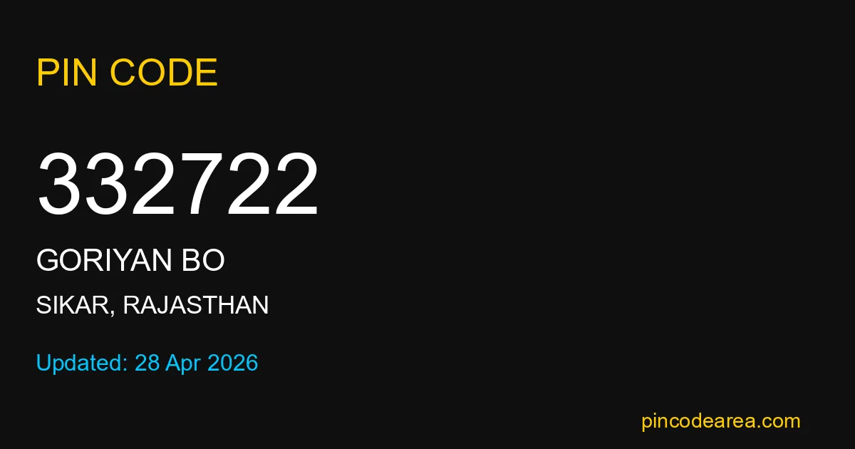 If you are searching for accurate location details, 332722 helps identify the exact postal region of Goriyan BO in Rajasthan.