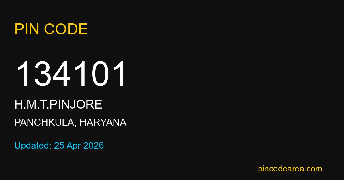 If you are searching for accurate location details, 134101 helps identify the exact postal region of H.M.T.Pinjore in Haryana.