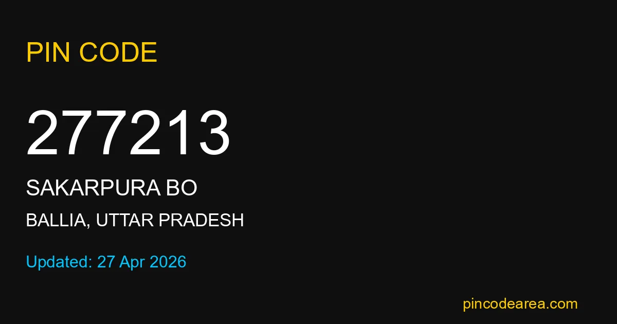277213 PIN Code is assigned to Sakarpura BO Post Office located in Ballia district of Uttar Pradesh. It helps identify the exact delivery area for postal and courier services.