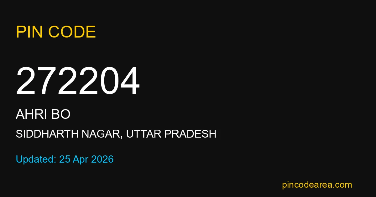 Many users search for 272204 PIN Code to confirm address details, track courier services, and ensure correct delivery location in Siddharth Nagar district.