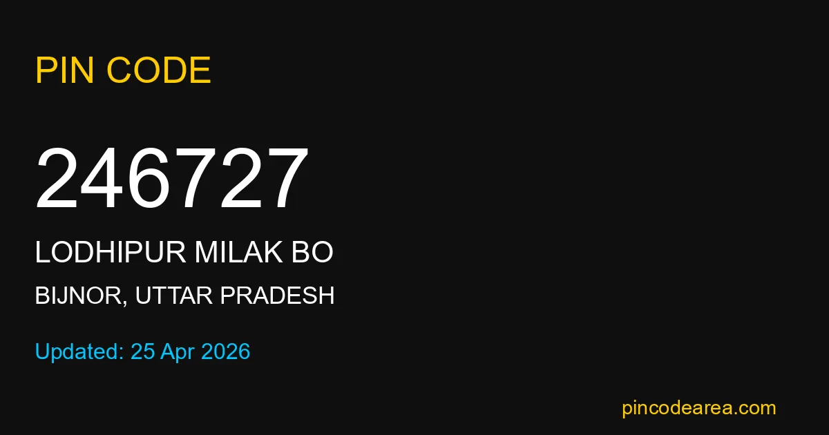 246727 PIN Code belongs to Lodhipur Milak BO Post Office in Bijnor district of Uttar Pradesh, India. This area mainly includes local residential and rural regions where India Post ensures timely mail and parcel delivery services.