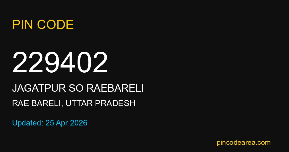 If you are searching for accurate location details, 229402 helps identify the exact postal region of Jagatpur SO Raebareli in Uttar Pradesh.