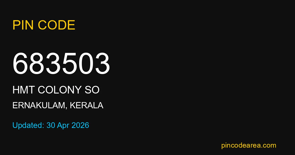 683503 PIN Code is assigned to Hmt Colony SO Post Office located in Ernakulam district of Kerala. It helps identify the exact delivery area for postal and courier services.