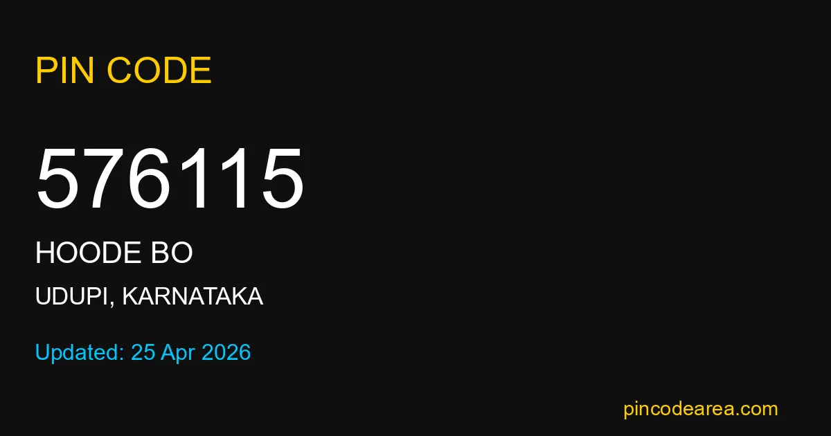 If you are searching for accurate location details, 576115 helps identify the exact postal region of Hoode BO in Karnataka.