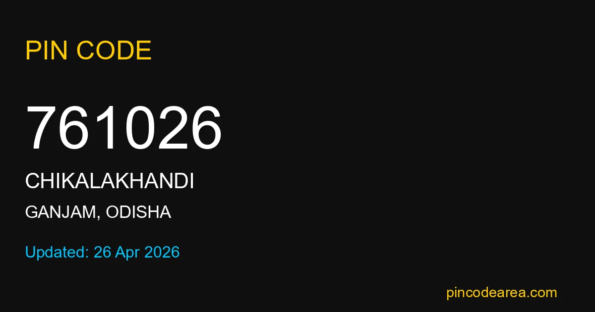 761026 PIN Code is assigned to Chikalakhandi Post Office located in Ganjam district of Odisha. It helps identify the exact delivery area for postal and courier services.