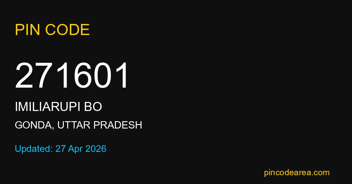 271601 PIN Code is assigned to Imiliarupi BO Post Office located in Gonda district of Uttar Pradesh. It helps identify the exact delivery area for postal and courier services.