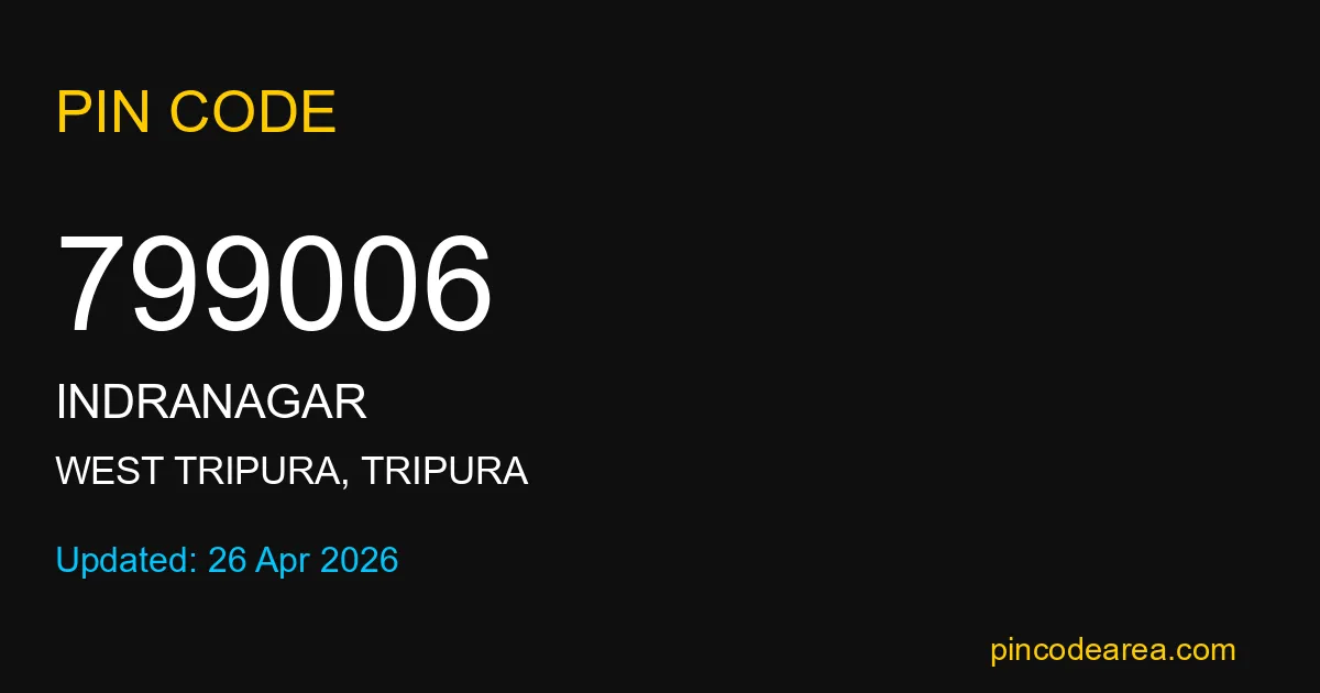 If you are searching for accurate location details, 799006 helps identify the exact postal region of Indranagar in Tripura.