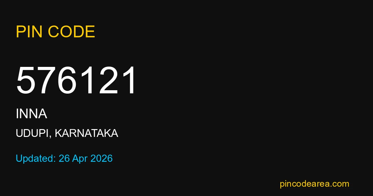 If you are searching for accurate location details, 576121 helps identify the exact postal region of Inna in Karnataka.