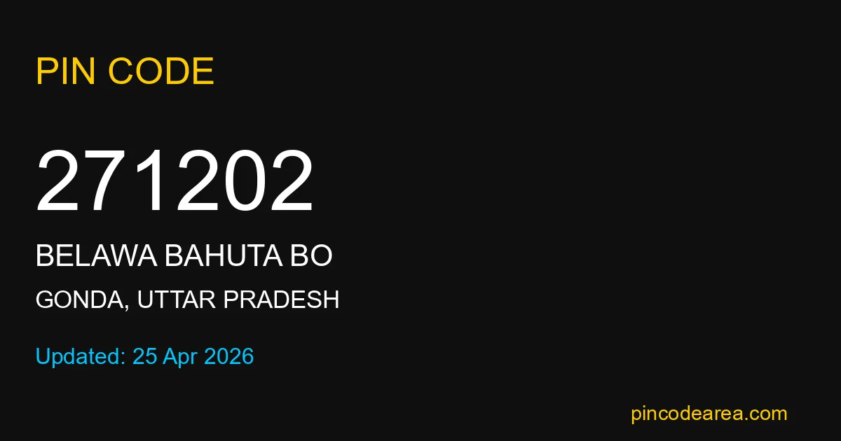271202 PIN Code belongs to Belawa Bahuta BO Post Office in Gonda district of Uttar Pradesh, India. This area mainly includes local residential and rural regions where India Post ensures timely mail and parcel delivery services.