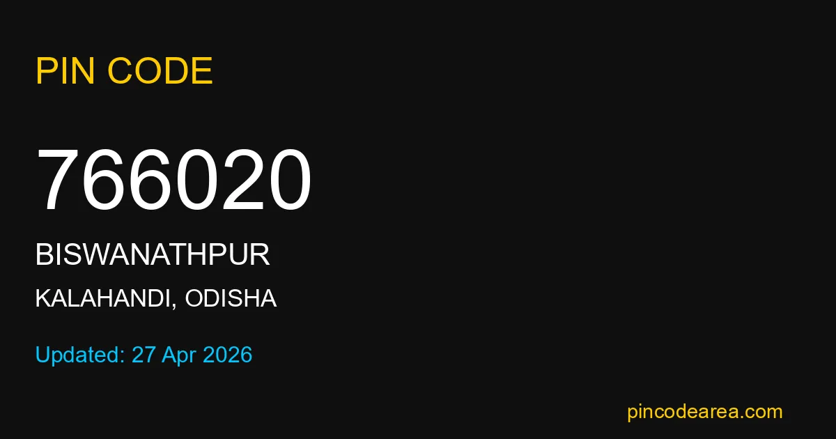 766020 PIN Code is assigned to Biswanathpur Post Office located in Kalahandi district of Odisha. It helps identify the exact delivery area for postal and courier services.