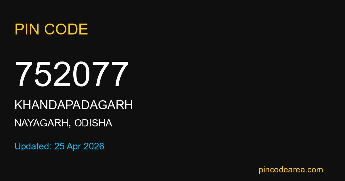 If you are searching for accurate location details, 752077 helps identify the exact postal region of Khandapadagarh in Odisha.