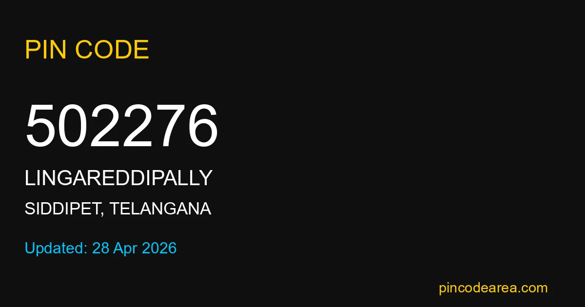 502276 PIN Code is assigned to Lingareddipally Post Office located in Siddipet district of Telangana. It helps identify the exact delivery area for postal and courier services.