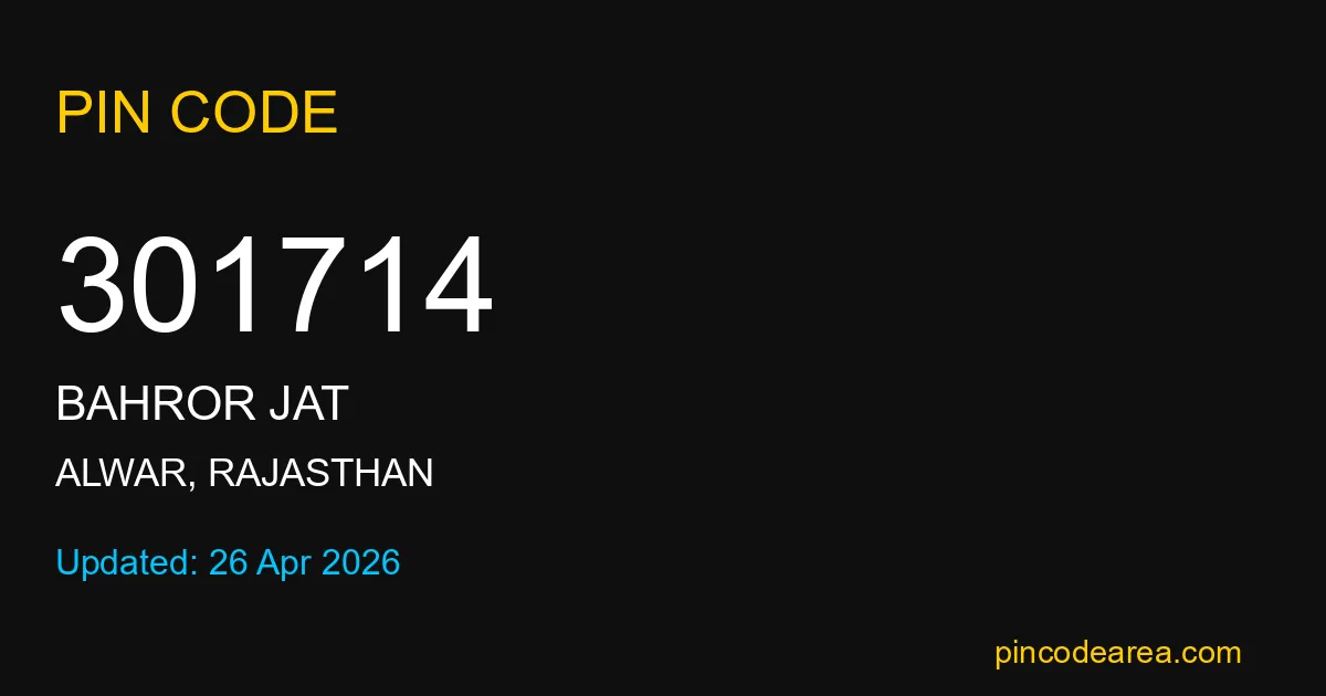 301714 PIN Code belongs to Bahror Jat Post Office in Alwar district of Rajasthan, India. This area mainly includes local residential and rural regions where India Post ensures timely mail and parcel delivery services.