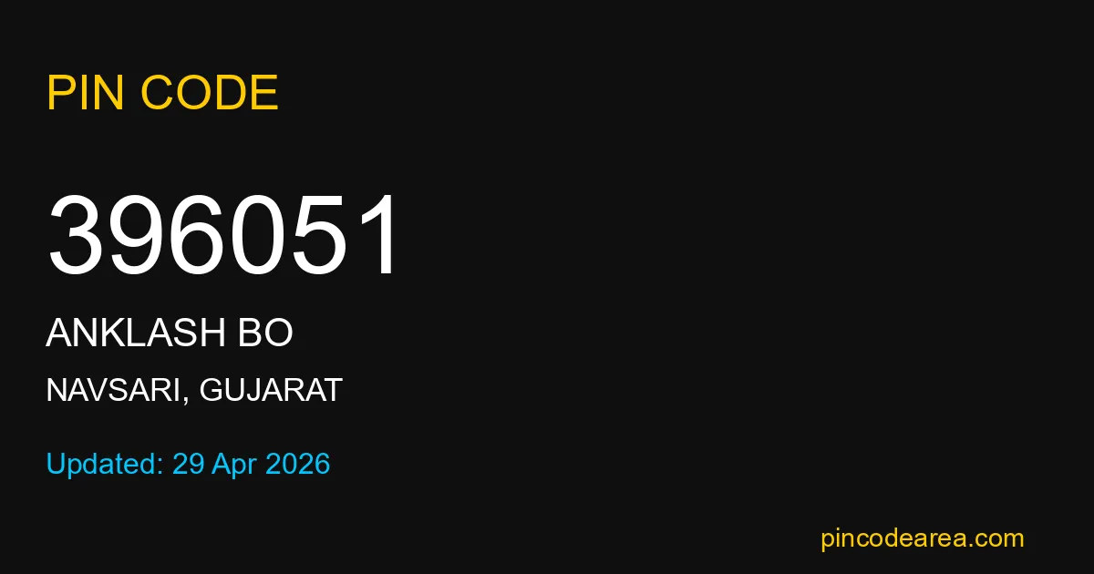 If you are searching for accurate location details, 396051 helps identify the exact postal region of Anklash BO in Gujarat.