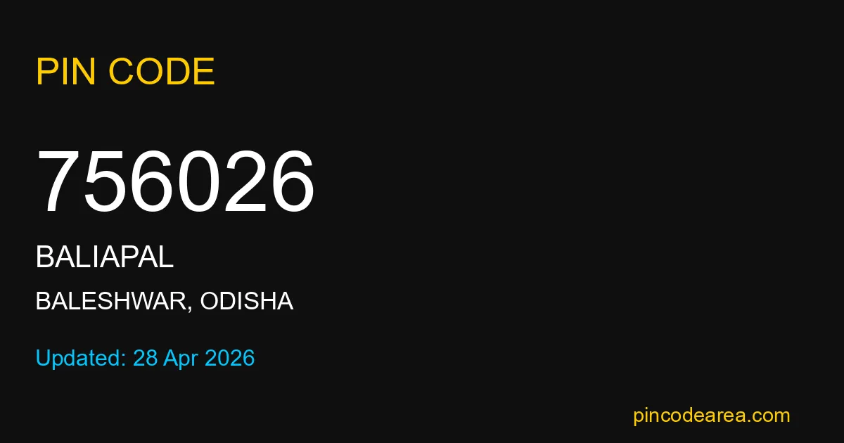 If you are searching for accurate location details, 756026 helps identify the exact postal region of Baliapal in Odisha.