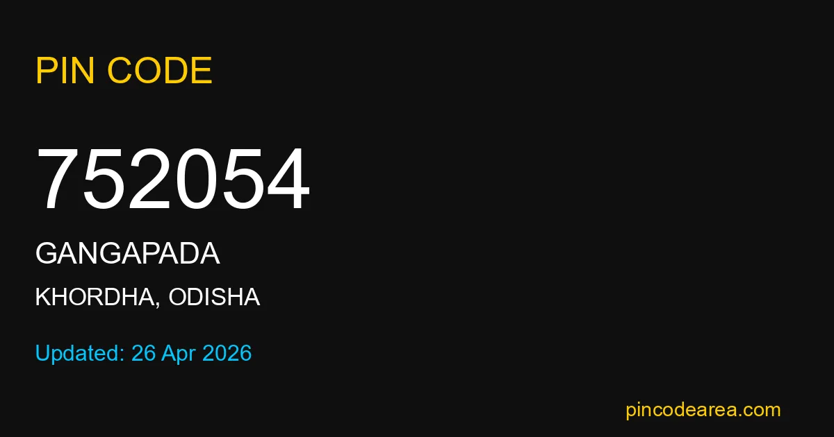 752054 PIN Code is assigned to Gangapada Post Office located in Khordha district of Odisha. It helps identify the exact delivery area for postal and courier services.