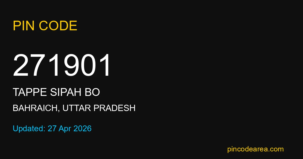 271901 PIN Code is assigned to Tappe Sipah BO Post Office located in Bahraich district of Uttar Pradesh. It helps identify the exact delivery area for postal and courier services.