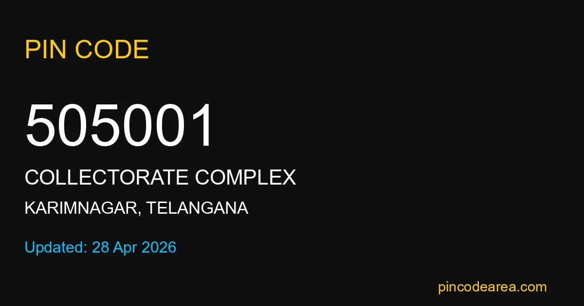 505001 PIN Code is assigned to Collectorate Complex Post Office located in Karimnagar district of Telangana. It helps identify the exact delivery area for postal and courier services.