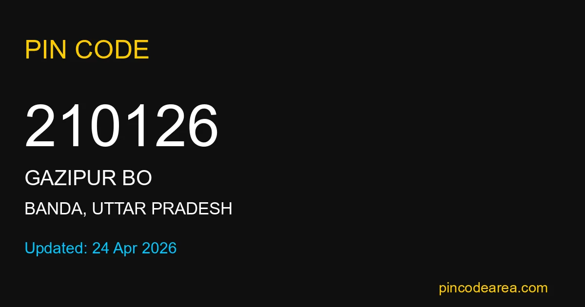 210126 PIN Code belongs to Gazipur BO Post Office in Banda district of Uttar Pradesh, India. This area mainly includes local residential and rural regions where India Post ensures timely mail and parcel delivery services.