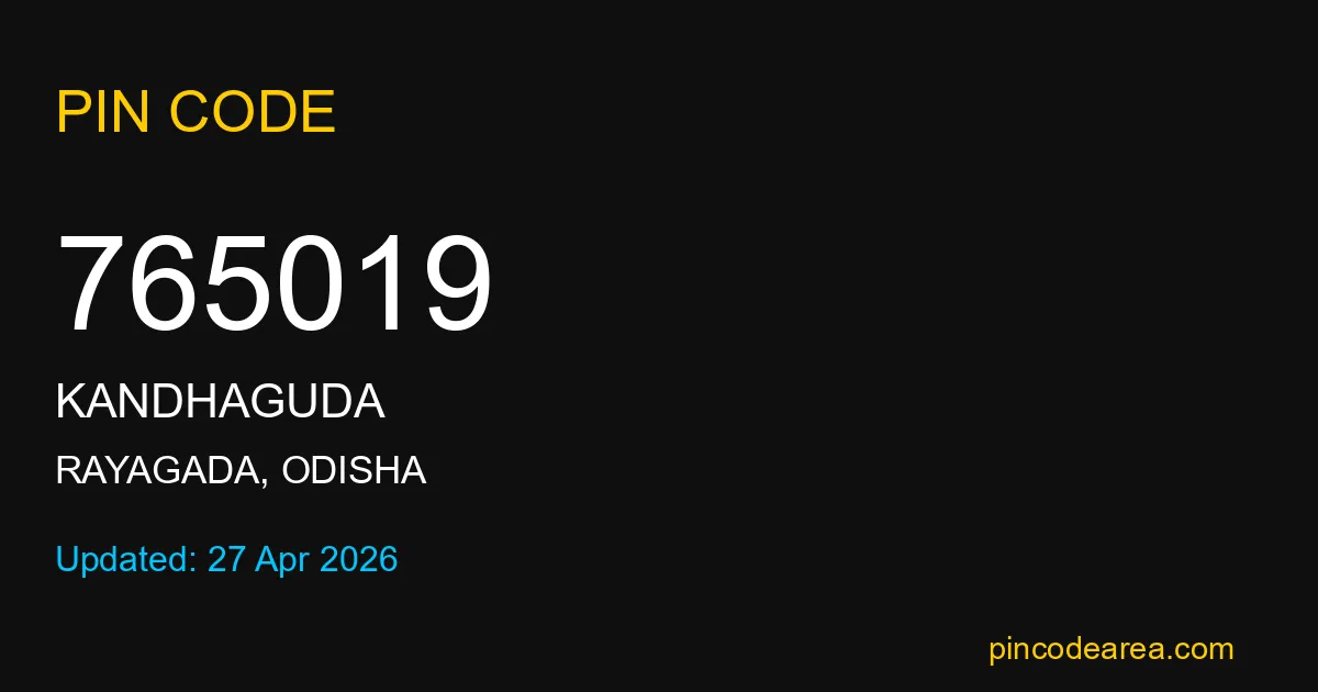 765019 PIN Code belongs to Kandhaguda Post Office in Rayagada district of Odisha, India. This area mainly includes local residential and rural regions where India Post ensures timely mail and parcel delivery services.