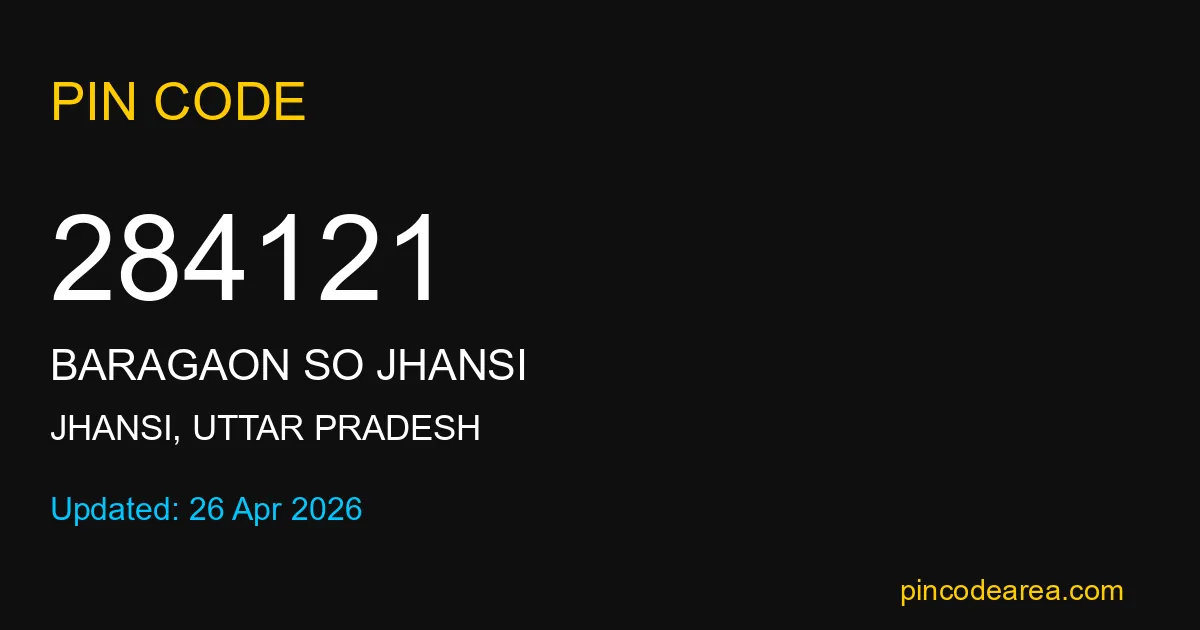 If you are searching for accurate location details, 284121 helps identify the exact postal region of Baragaon SO Jhansi in Uttar Pradesh.