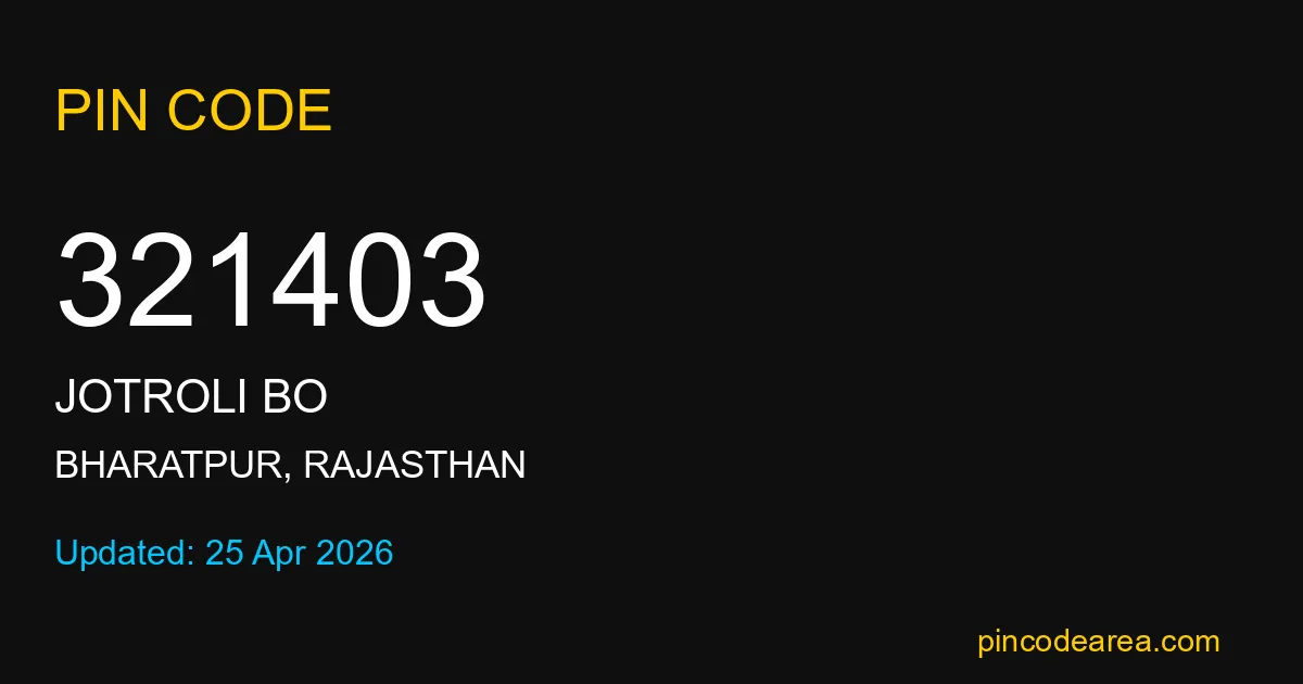If you are searching for accurate location details, 321403 helps identify the exact postal region of Jotroli BO in Rajasthan.
