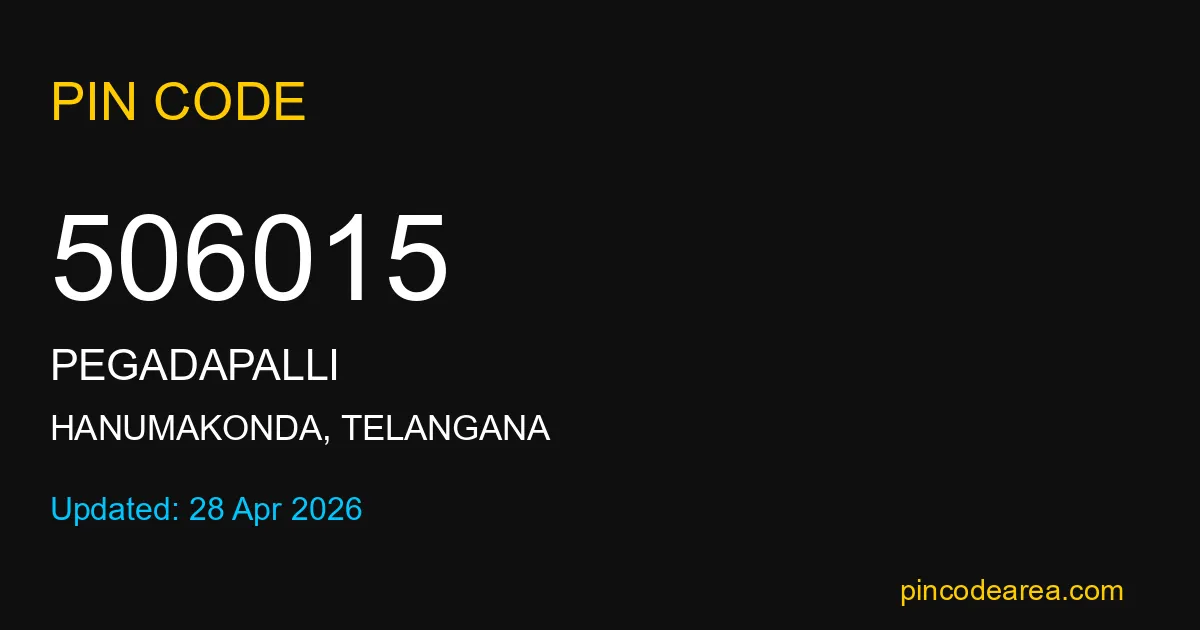 506015 PIN Code is assigned to Pegadapalli Post Office located in Hanumakonda district of Telangana. It helps identify the exact delivery area for postal and courier services.