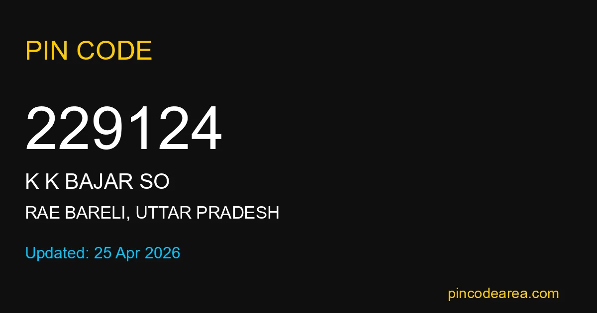 If you are searching for accurate location details, 229124 helps identify the exact postal region of K K Bajar SO in Uttar Pradesh.