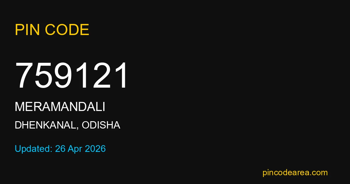 If you are searching for accurate location details, 759121 helps identify the exact postal region of Meramandali in Odisha.