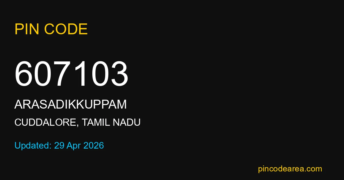 If you are searching for accurate location details, 607103 helps identify the exact postal region of Arasadikkuppam in Tamil Nadu.