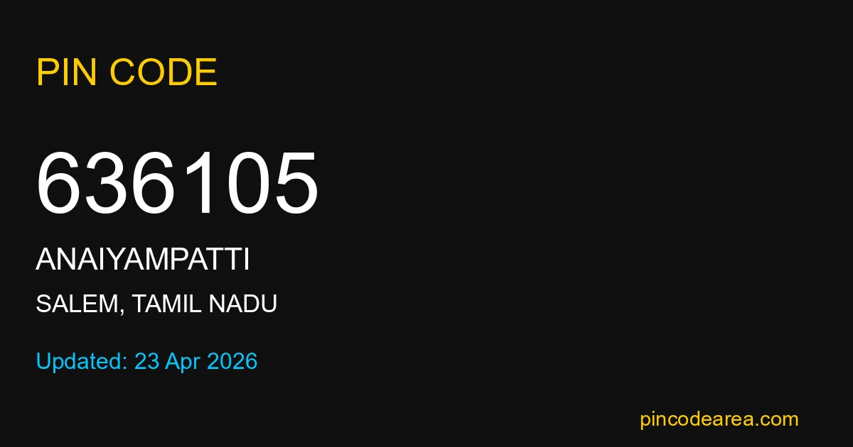 If you are searching for accurate location details, 636105 helps identify the exact postal region of Anaiyampatti in Tamil Nadu.