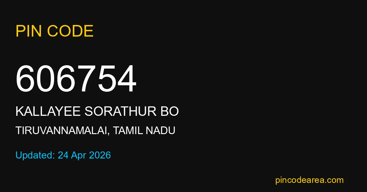 If you are searching for accurate location details, 606754 helps identify the exact postal region of Kallayee Sorathur BO in Tamil Nadu.
